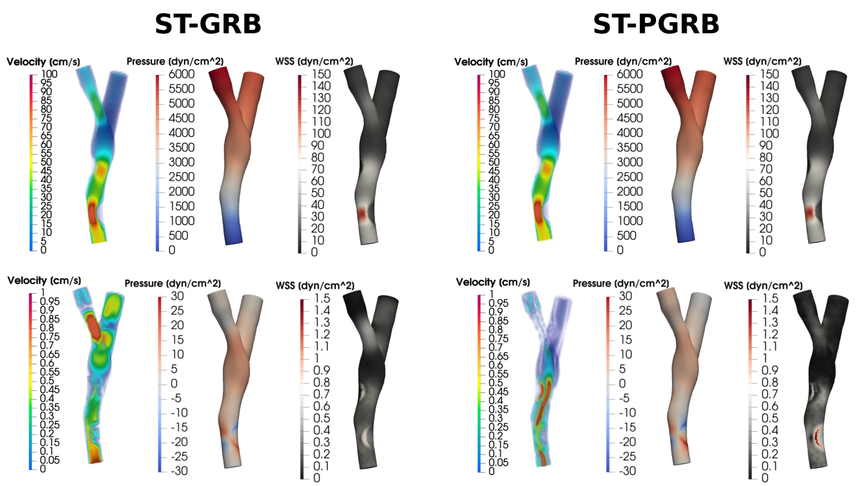 The development of stabilized reduced basis methods for the efficient solution of hemodynamics problems in arterial blocks. These methods significantly enhance the efficiency of traditional spatial-only reduced basis schemes, while maintaining comparable accuracy.