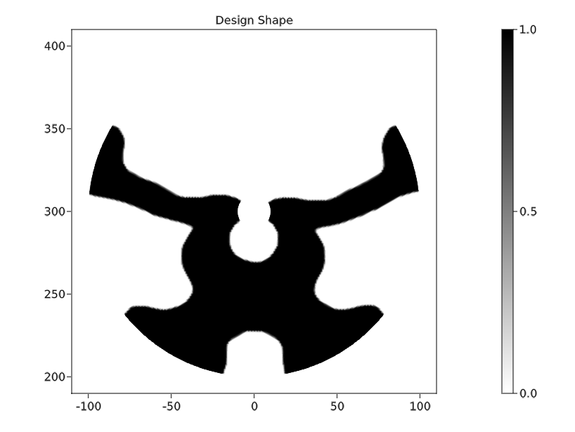 Figure 8: A compliant mechanism generated with a topology optimization solver.